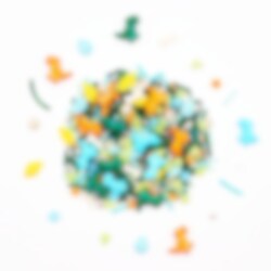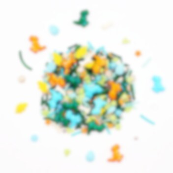 Pynt dine kaker, muffins, smultringer og andre godsaker med vår fantastiske dryssblanding fra PME. Det er et brukervennlig strø som har mange morsomme detaljer og matchende farger. Perfekt til bursdagsselskaper med dinosaurtema eller andre festlige anledninger hvor du vil forgylle bakverkene dine. Pakken inneholder 60 gram. Ingredienser: sukker, dekstrose, stivelse (mais), rismel, dekstrin, ikke-hydrert vegetabilsk olje (palme), xantangummi, emulgator: E572, farge: E160c, E100, E160a, E133, E153, glasur, overflatebehandling: E903. Kan inneholde spor av: soya.