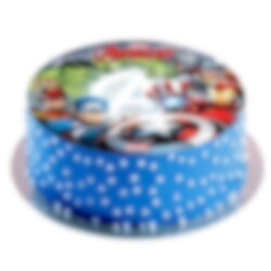 Kul og fargerikt kakebilde av oblat med motiv av superheltene Hulken, Thor, Iron Man og Captain America fra Avengers. Bak en egen personlig kake til barnefesten. Bildet som er 20 cm i diameter er enkel å anvende. Kakebilder av oblat er gluten- og laktosefrie og har ingen tilsatt sukker.