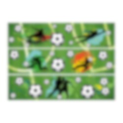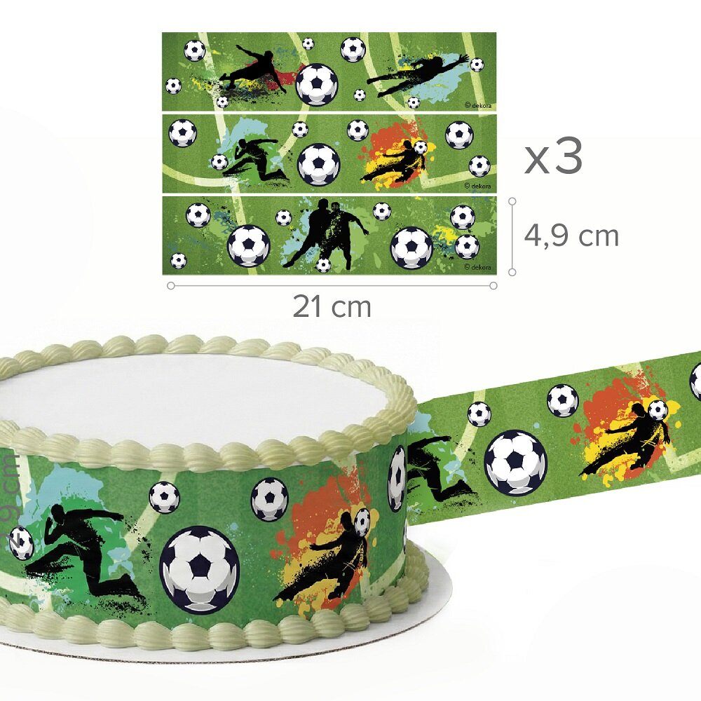 Lag en skikkelig sporty bursdagskake med dette kakedekorasjonsbåndet i fotballtema! Med de grønne bakgrunnene, fotballene og spillersilhuettene blir det enkelt å dekorere kanten på kaken og gi kaken en tydelig fotballfølelse.