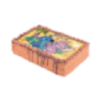 Dette firkantede kakebildet i sukkerpasta med bilder av Lilo & Stitch gir kaken din et vakkert utseende! Kakebildet er klart til å legges direkte på kaken og har et skarpere og mer detaljert trykk enn et oblatbilde har. I tillegg har bildet en god vaniljesmak. Kakebildet er 15 x 21 cm stort.