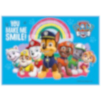 Dette firkantede kakebildet i sukkerpasta med motiv fra Paw Patrol gir kaken din et vakkert utseende! Kakebildet er klart til å legges direkte på kaken og har et skarpere og mer detaljert trykk enn et oblatbilde har. I tillegg har bildet en god vaniljesmak. Kakebildet er 15 x 21 cm stort.