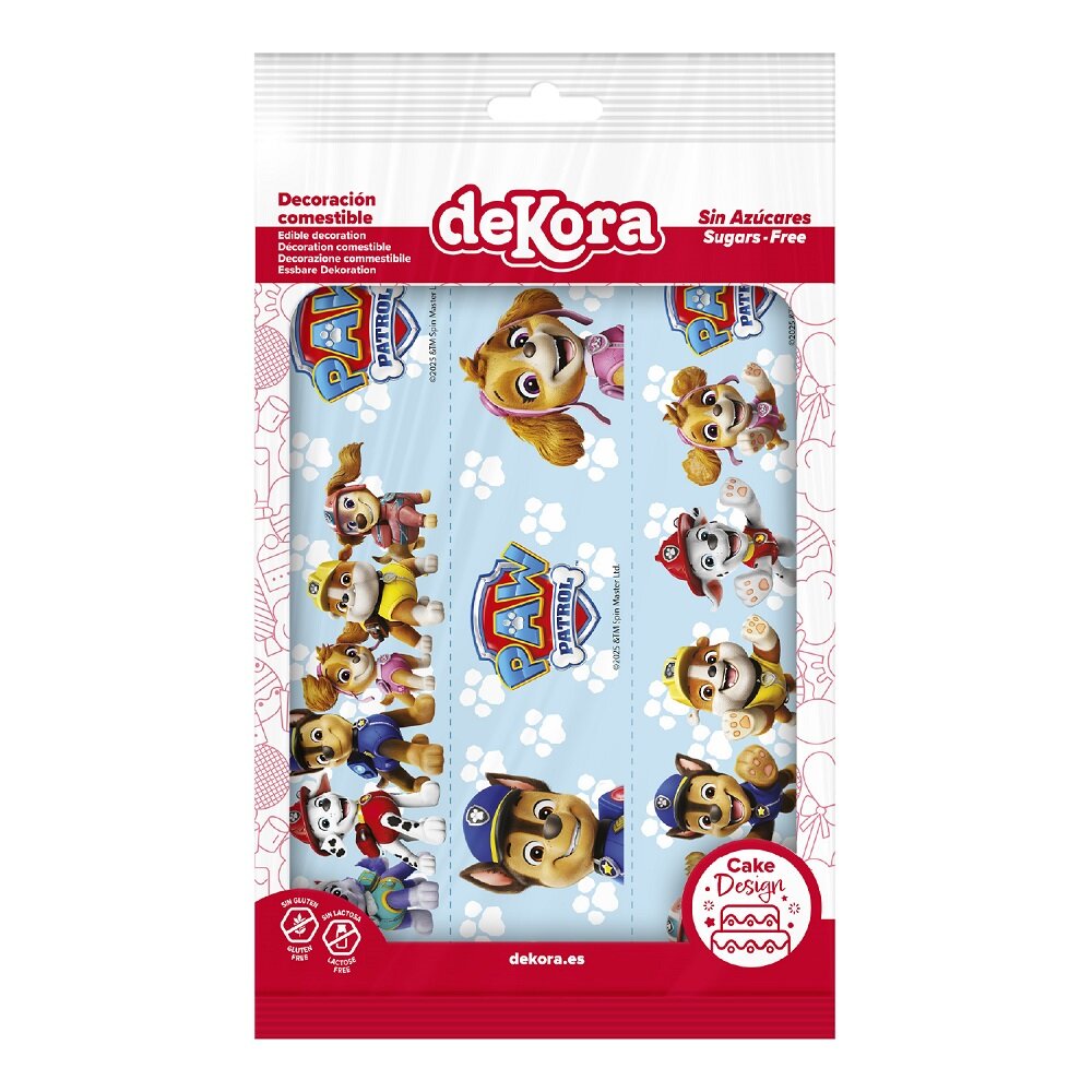 Forvandle kaken til et ordentlig Paw Patrol-eventyr! Med dette fargerike kakedekorasjonsbåndet i sukkerpasta kan du enkelt dekorere kanten på kaken og lage en festlig kake med de populære valpene fra Paw Patrol.