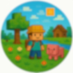 Gjør kaken til et ekte eventyr i pikselverdenen. Med dette fargerike og lekne kakebildet i sukkerpasta er det enkelt å lage en imponerende og morsom kake, perfekt til bursdag med spilltema. Motivet viser en søt figur med sekk, en glad gris og et landskap med trær, hus og blå himmel, som tatt rett ut av et dataspill.