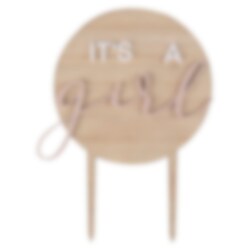 Denne fantastiske cake topper i tre, med teksten "It's a Girl", er den perfekte dekorasjonen for din babyshower eller gender reveal party. Med målene 12 x 18 cm og laget av holdbart tre, vil den legge til en sjarmerende touch til kaken din.