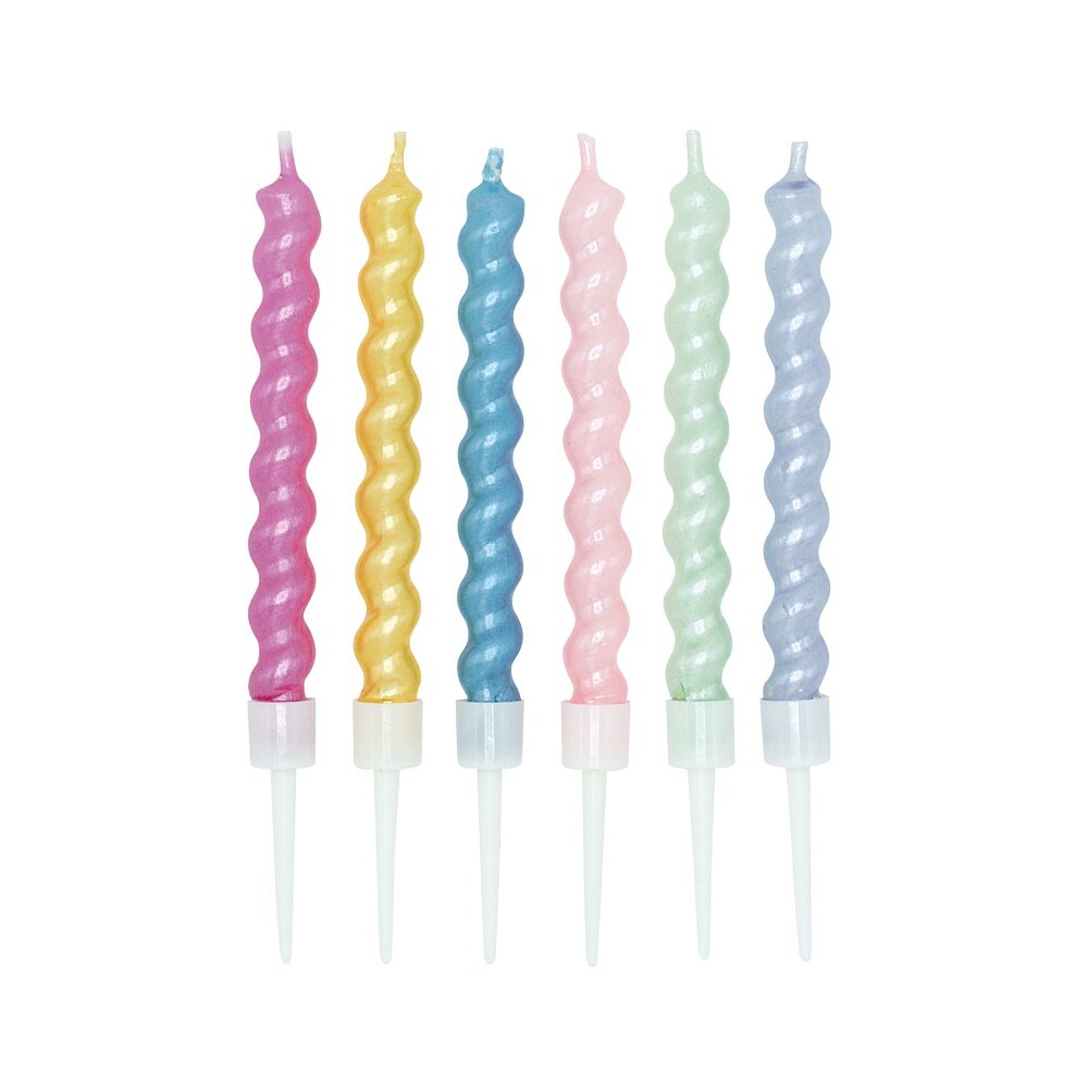 De fine pastellfargene og den blanke overflaten gjør lysene til et flott blikkfang på bursdagskaken. Hver bokstav sitter på en praktisk holder som gjør dem enkle å plassere i kaken, cupcakes eller andre bakevarer når det er tid til å feire.
