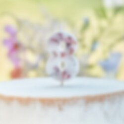 Fine kakelys i hvit farge med tørkede rosa blomster. Dekorer kaken med disse og gjør den enda finere til festen. Kombiner slik du selv vil, da lysene er tilgjengelige i tallene 0-9. Kakelysene sitter på en pinne og de er ca. 7 cm høye. Prisen gjelder for ett lys.