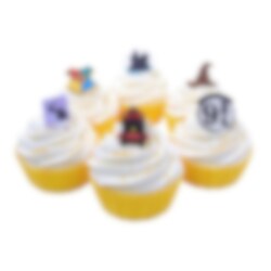 6 stk. håndlagde og unike sukkerdekorasjoner med motiv fra Harry Potter og Galtvort som du kan dekorere både cupcakes og kaker med. De passer perfekt til en bursdagsfest med Harry Potter.
