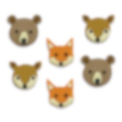 5 stk. sukkerdekorasjoner som forestiller søte bjørner, hjort og reve-ansikter. Pynt muffinsen eller kaken med disse når det er tid for fest med dyretema.