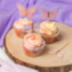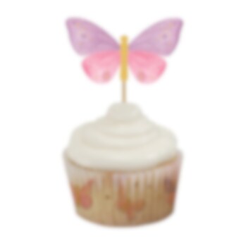 12 stk. vakre cake toppers med sommerfugler i forskjellige størrelser. Perfekt hvis du vil dekorere dine cupcakes, kaker eller andre bakverk. De er laget av papp og tre og har en høyde på ca 8 cm.