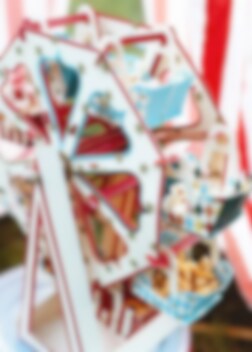 Skap en magisk sirkusfølelse på festen med denne unike snackstativet i form av et pariserhjul! Med sine fargerike detaljer og 8 små kabiner er den perfekt for å servere popcorn, godteri eller andre snacks på en leken måte. Stativet er 33 cm bredt og 48 cm høyt og er laget av papp. Enkel å montere og blir garantert et blikkfang på bursdagen eller temafesten.