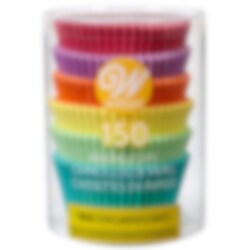Pakke med 150 stk. muffinsformer i fine regnbuefarger fra Wilton. Perfekt å bake gode muffins eller cupcakes i når det er tid for fest eller en spesiell anledning. Muffinsformene er ca. 4,5 cm i bunnen.