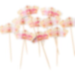 10 stk. cake toppers som er formet som prinsessekroner. Prinsessekronene er laget av papp, sitter på en trepinne og er 8 x 5 cm.