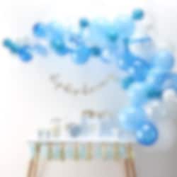 Ballongbue i blå og hvite farger som du selv kan sette sammen. En vakker dekorasjon som passer til bursdag, fest eller bryllup. Pakken inneholder 70 stk. ballonger og engelske instruksjoner til hvordan du setter sammen buen. Ballongbuen blir ca. 4 meter stor.