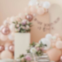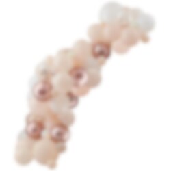 Flott ballongbue i fersken, hvit og roségull, som du selv bygger sammen. En nydelig dekorasjon som passer både til selskap, fester eller bryllup. Pakken inneholder hele 70 stk. ballonger i forskjellige størrelser, i tillegg til tilbehør. Ballongbuen er ca. 4 meter lang.