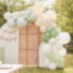 Nydelig ballongbue i nøytrale toner som du bygger selv. En virkelig imponerende dekorasjon som passer til både fest, feiring eller bryllup. Pakken inneholder hele 70 stk. ballonger i forskjellige størrelser og tilbehør. Ballongbuen er ca. 4 meter lang.