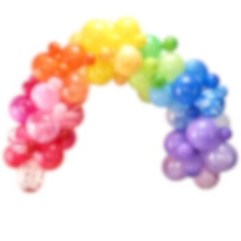 Ballongbue i fargerike farger fra regnbuen, som du selv kan bygge. En dekorasjon som passer til bursdag, fest eller bryllup. Pakken inneholder 85 stk. ballonger og engelske instruksjoner til hvordan du setter sammen buen. Ballongbuen blir ca. 4 meter stor.