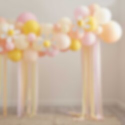 Herlig ballongbue i pastellfarger som du bygger selv. En virkelig imponerende dekorasjon som passer både til bursdag, fest eller bryllup eller rundt påsketider. Pakken inneholder totalt 70 stk. ballonger i forskjellige størrelser og tilbehør. Ballongbuen er ca 5 meter lang. Ballongbuen er også miljøvennlig.