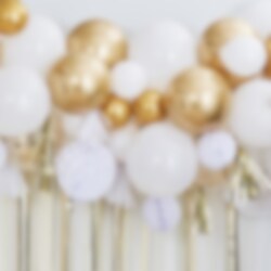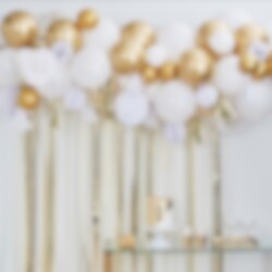 8 stk. tassels i hvit og gullfolie med tilhørende ballongteip som er 4 meter lang.