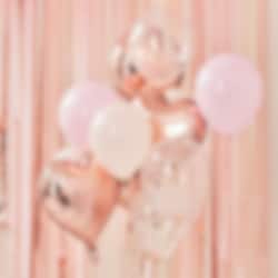 Skap magi med denne vakre ballongbuketten i roségull, lys rosa og hvit! Perfekt for festdekorasjon, babyshower eller som en overraskelse til bursdagsbarnet. Pakken inneholder 12 fantastiske ballonger: