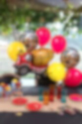Denne ballongbuketten er en perfekt dekorasjon for alle bursdag med bygg- eller kjøretøytema. Buketten inneholder åtte ballonger samt snor og sugerør for enkel oppblåsing og montering.