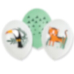 6 stk. lateksballonger i fargene hvit og grønn med søte motiver av safaridyr. Perfekte dekorasjoner å blåse opp til bursdagen med safaritema. Ballongene er ca. 27 cm i diameter når de er blåst opp og blåses opp med luft eller helium.
