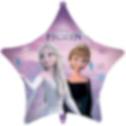 Fin stjerneformet folieballong i rosa nyanser med dobbeltsidig motiv av søstrene Anna og Elsa fra Disney's fantastiske film Frost. Morsom å blåse opp og pynte med til bursdagen.