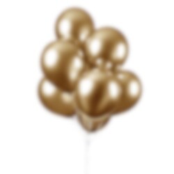 10 stk. speilblanke chrome-ballonger i gull som er perfekte til pynt til både bursdager og andre festligheter.