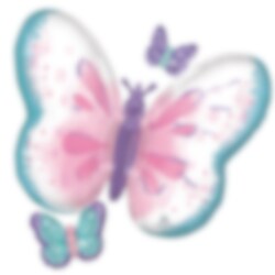 Flott folieballong som er formet som en fargerik sommerfugl. En vakker dekorasjon å pynte rommet med til selskapet. Ballongen er ca. 73 x 71 cm stor når den er oppblåst, og blåses opp med luft eller helium.