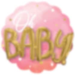 Folieballong i en rosa farge med 3D motiv av teksten "Oh Baby" i gull og hvitt. En imponerende dekorasjon til babyshoweren. Ballongen er ca. 71 cm i diameter oppblåst og blåses enklest opp med luft eller helium.