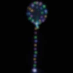 Transparent ballong i elastisk plast med tilhørende LED-lysslinge som lyser i blandede farger. En imponerende dekorasjon å ha med på festen. Ballongene blir ca. 45 - 56 cm i diameter når den er oppblåst. Ballongen blåses opp med helium. Lysslingen er ca. 5 meter lang og behøver 2 stk. AA batterier som ikke følger med i pakken.