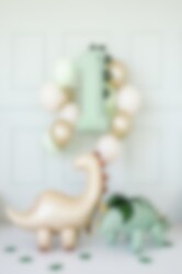 Feir stort med en imponerende dinosaurballong formet som tallet 1. Den lysegrønne fargen med dekorative dinosaurpigger langs kanten gjør den perfekt til et dinosaurselskap – og ekstra fin til et 1-årsselskap.