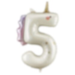 En magisk folieballong formet som tallet 5 med fin enhjørningsdesign. Perfekt til enhjørningsselskap eller som del av en større talldekoration.