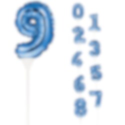 Blå, mindre folieballong til å ha på din kake, dine bakverk eller som annen stilig dekorasjon til festen eller bursdagen. Ballongen er ca. 13 cm. høy og sitter på en plastpinne. Ballongen blåses opp av seg selv. Kombiner slik du vil da ballongene er tilgjengelig i sifrene 0-9. Prisen er pr. ballong.