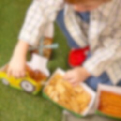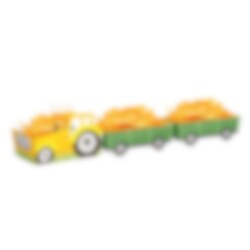 Fyll boksene med chips, popcorn, godteri eller annen snacks og la dem bli en dekorativ del av borddekkingen. Boksene er laget av papir. Traktoren måler 16 x 10 x 4,5 cm.