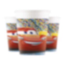 8 stk. flotte pappkopper med et stilig motiv av Blixten McQueen fra filmen Biler 3. Koppene er ca.10 cm høye og rommer ca. 200 ml.