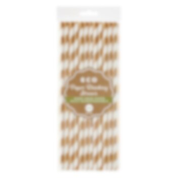 24 stk. hvite sugerør av papp med striper i roségull. Sugerørene er ca. 20 cm lange.