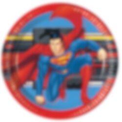 8 stk. tallerkener med kule Superman motiv. Tallerkenene er laget av FSC-sertifisert, miljøvennlig papir og er ca 23 cm i diameter.