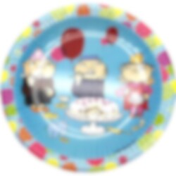 8 stk. papptallerkener med fargerike og festlige motiver av Albert og vennene Milla og Viktor fra Albert Åberg-serien. Tallerkenene er 17,5 cm i diameter.