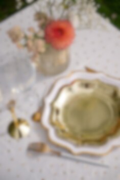 Tallerkenene har en dekorativ form med myke, bølgete kanter som gir et eksklusivt inntrykk. De passer perfekt når du vil dekke bordet med noe som føles både festlig og gjennomtenkt, uansett type feiring.