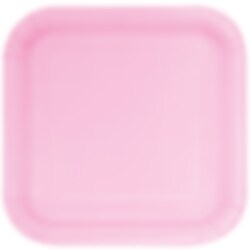 14 firkantede papptallerkener i en vakker lyserosa farge. Tallerkenene er laget av miljøvennlig papir og måler 22,2 × 22,2 cm.