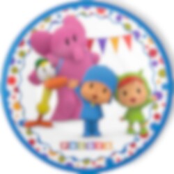 8 fargerike tallerkener med motiv fra Pocoyo og vennene hans. Tallerkenene er laget av papir og har en diameter på ca 23 cm. De er perfekte for å skape en glad og leken stemning på bursdagen!