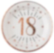 Papptallerkener Roségull Glitrende 18-årsfest 10 stk.