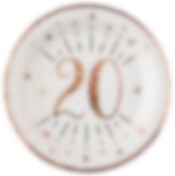 Papptallerkener Roségull Glitrende 20-årsfest 10 stk.