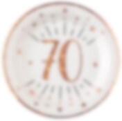 Papptallerkener Roségull Glitrende 70-årsfest 10 stk.