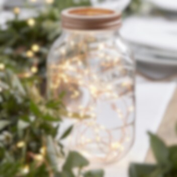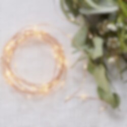 LED-lysledning i pen roségullfarge. Kle bordet med denne for en vakker effekt når du skal feire bursdag, babyshower eller andre festlige tilfeller. Ledningen er 3 meter lang og drives av 2 stk. AA-batterier som ikke inngår.