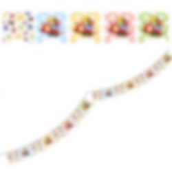 Herlig girlande å dekorere med på din Babblarna barnefest. Girlanden er 3 meter lang og består av 16 stk. fargerike vimpler med ulike Babblarna motiv. Laget av papp