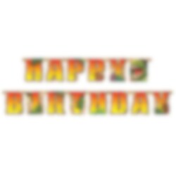 Denne Happy Birthday-girlanderen av papp er en spennende dekorasjon for alle dinosaur elskere. Med en lengde på 220 cm, er denne kule girlanderen perfekt for å skape en eventyrlig atmosfære på barnebursdagen.
