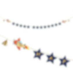 Søt girlander i flytema med både fly og stjerner av papp som du kan dekorere med til din bursdag. Hver stjerne har en bokstav som sammen blir "Happy Birthday". Til girlanderen følger det med en snor som er 3 meter lang.