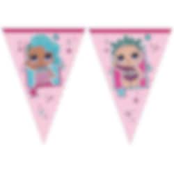 Flaggirlander av plast i flotte farger med motiv av Cosmic Queen og Splash Queen fra LOL Surprise-gruppen The Glitterati. En kul dekorasjon å pynte med når det skal gjøres klar til fest. Girlanden er ca. 2,3 meter lang og har motiv på begge sider.
