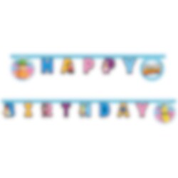 Fargesprakende flaggirlander av papir med motiver fra Stumble Guys. En perfekt dekorasjon for å skape en morsom stemning på bursdagen! Girlanderen er ca 2,3 meter lang og hver vimpel er ca 24,5 cm høy.